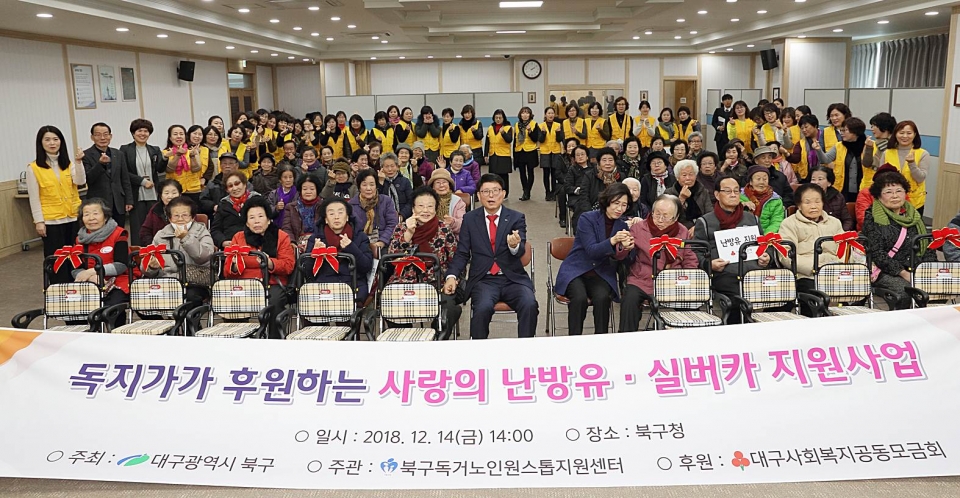 대구 북구청(청장 배광식)은 지난 14일(목) 오후 2시, 지역 독지가의 후원금으로 홀로 생활하는 저소득 어르신 206명에게 난방유 상품권과 실버카를 전달했다.