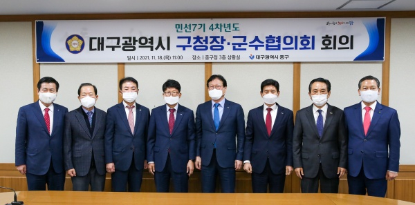 대구 중구청(구청장 류규하)은 지난 18일 구청 상황실에서 민선7기 구청장·군수 정책협의회 회의를 개최했다.