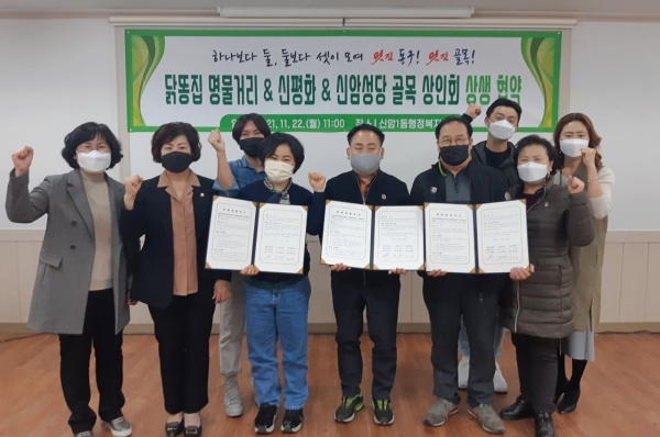 평화시장 닭똥집 명물거리 상우회와 신평화 골목상인회, 신암성당 골목상인회는 지난 22일, 신암1동 행정복지센터에서 마케팅 협정을 체결하고, 서로 협력을 다하기로 했다.