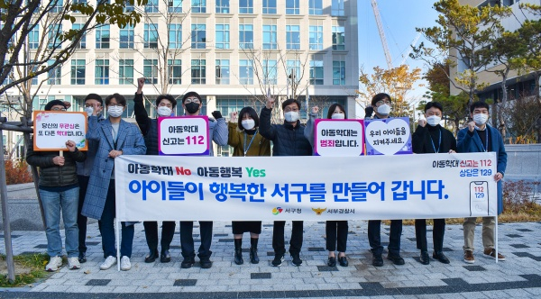 대구 서구청은 아동학대 예방주간을 맞이하여 11월 19일과 22일 양일간 서부경찰서와 함께 아동학대 예방과 아동보호에 대한 지역주민들의 관심을 촉구하는 캠페인을 펼쳤다.