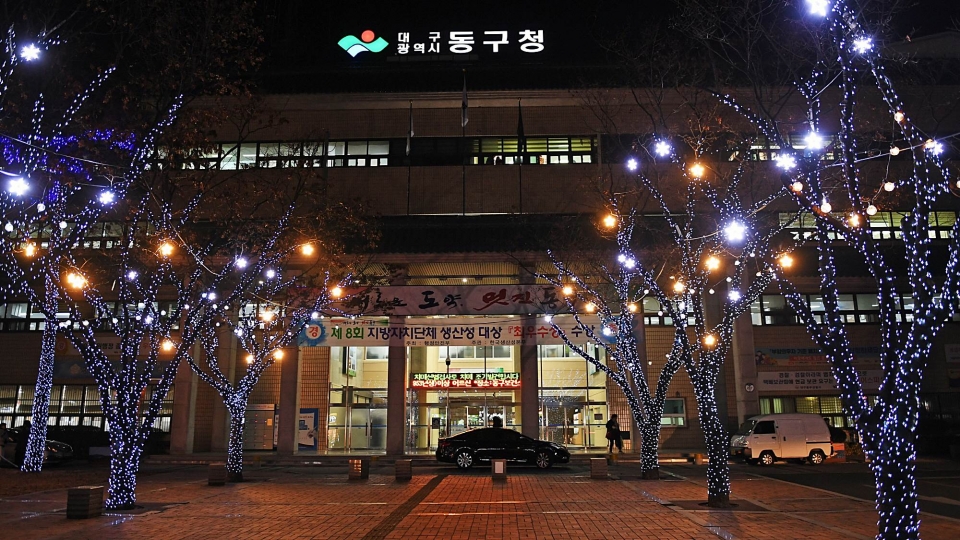 동구청사 앞 동절기 경관조명(야간)-1
