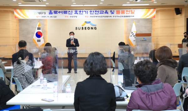 대구 수성구(구청장 김대권)는 지난 26일 홀로 거주하는 어르신들을 대상으로 겨울철 안전사고 예방을 위해 혹한기 안전교육을 했다.