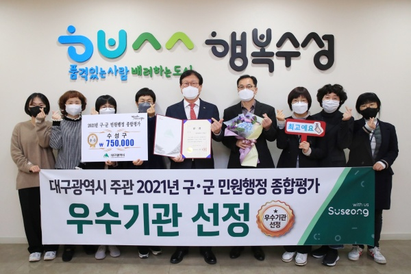 대구 수성구(구청장 김대권)는 대구시에서 실시한 ‘2021년 구‧군 민원행정 종합평가’에서 우수기관으로 선정됐다고 1일 밝혔다.