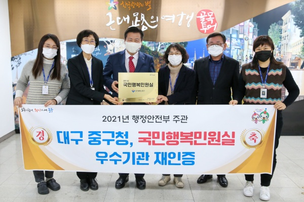 | ↑↑ 중구 국민행복민원실 우수기관 재인증 |