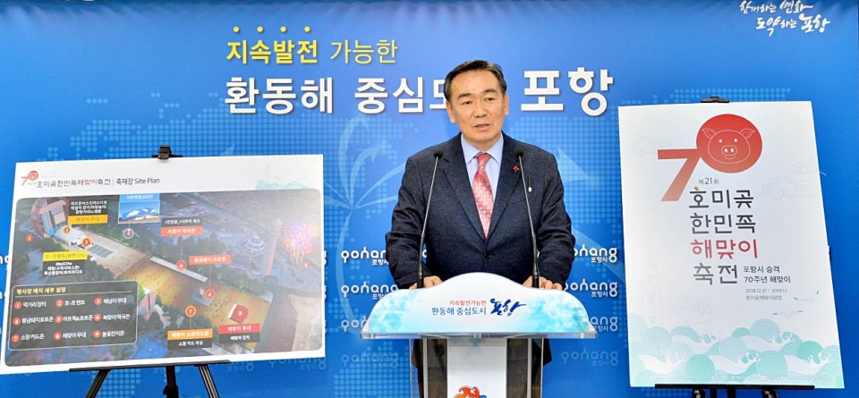 2019 기해년(己亥年) 대한민국 대표 해맞이축제인 '제21회 호미곶한민족해맞이축전'이 오는 31일부터 2019년 1월 1일 이틀간 포항 호미곶 새천년광장에서 개최된다.