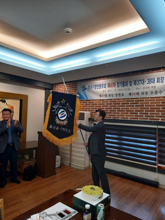 재대구영천향우회는 지난 12월14일 수성구 만촌동 인터불고호텔에서 '제46차 정기총회 및 회장 이·취임식'을 가질 예정이었으나, 코로나로 인해 12월 15일 낮 12시 금강회 초밥에서 약식으로 진행하였습니다.