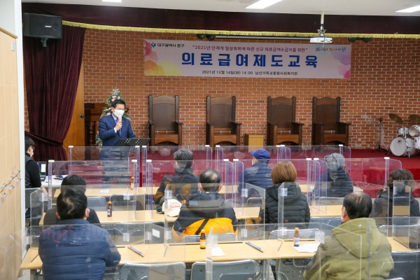 대구 중구청(구청장 류규하)에서는 지난 14일 의료급여 신규 수급권자를 대상으로 남산기독종합사회복지관에서 단계적 일상회복에 따른 의료급여제도 교육을 실시했다.