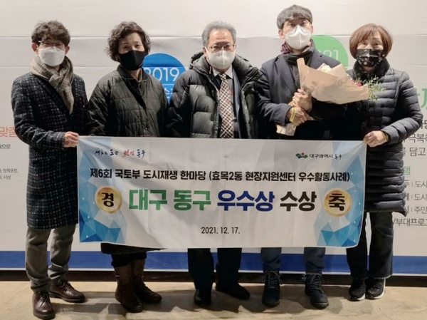 대구 동구청(구청장 배기철)이 지난 17일, 국토교통부·충청북도·청주시가 주최하고, LH·HUG·한국부동산원이 주관하는 ‘2021 도시재생 한마당 도시재생지원센터 우수사례 경진대회’에서 우수상을 수상했다.