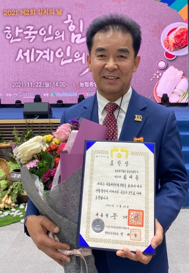 재구청송군향우희 김태종 상임부회장이 농림식품축산부가 주관한 제2회 김치의 날(2021.11.22.) 기념식에서 대통령표창을 수상했다.