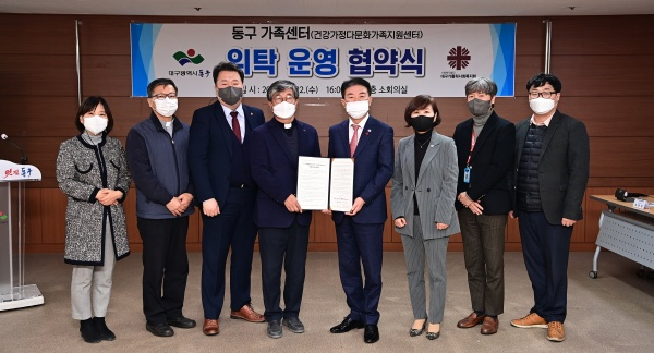 대구 동구청(구청장 배기철)과 사회복지법인 대구가톨릭사회복지회는 지난 22일, 동구 가족센터(건강가정•다문화가족지원센터)위탁운영을 위한 협약식을 가졌다.