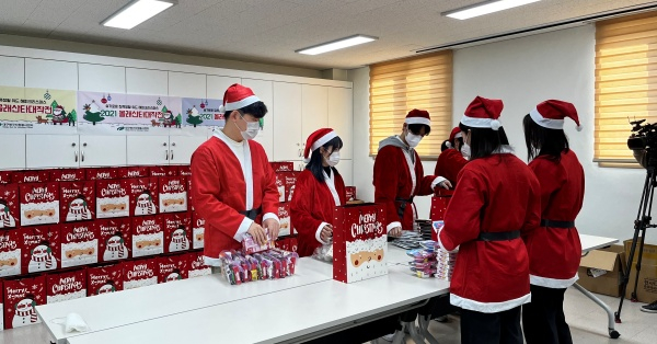 대구북구자원봉사센터(센터장 장원수)는 크리스마스를 맞이하여 12월 22일(수) 산타복을 입은 봉사자들이 북구 관내 지역아동센터를 방문하여 선물꾸러미를 전달하는 자원봉사활동을 실시했다.