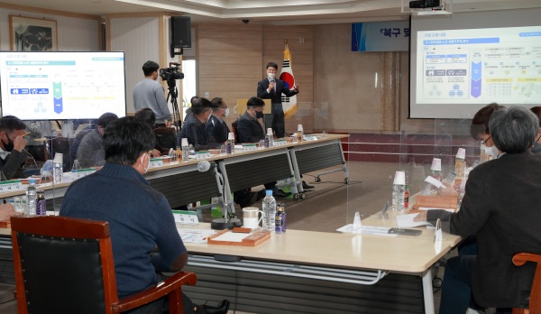 대구 북구청(청장 배광식)은 데이터 기반의 과학적 행정 추진 및 정책활용 활성화를 위하여 약 6개월간 진행했던 ‘2021년 북구 맞춤형 빅데이터 분석 활용모델 개발’ 사업의 완료보고회를 12월 27일(월) 오후 3시, 대회의실에서 개최했다.