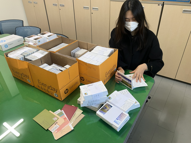| ↑↑ 공사에서 느린우체통 엽서 1만여통 발송을 위해 분류작업을 하고 있다. |