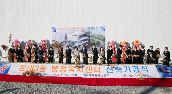대구 중구청(구청장 류규하)은 지난 7일 중구 달성동 229-28번지 일원에서 성내3동 지역주민의 숙원사업인 『성내3동 행정복지센터 신축 기공식』을 가졌다.