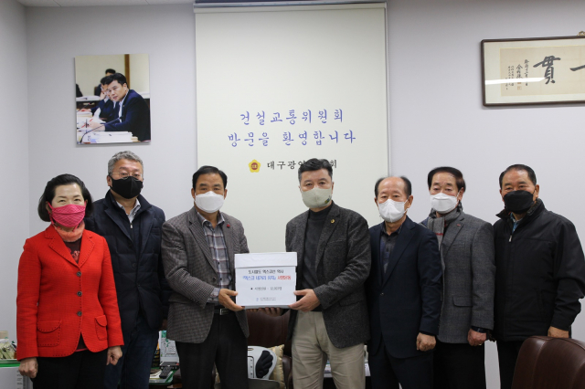 2021년 12월 28일 10시에 종합유통단지관리공단 김상출 이사장은 역사유치 TF팀원들과 함께 도시철도 건설본부를 방문해 김형일 본부장을 만나 12,023명이 참여한 ‘도시철도 엑스코선 역사 『엑스코 네거리 유치』 서명운동’ 서명지를 전달했다. 이어 대구시의회 장상수 의장, 강민구 부의장, 김원규 건설교통위원장을 방문해 서명지 사본을 전달하는 등 도시철도 엑스코 네거리 유치 필요성 등을 설명했다.