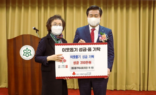 대구광역시 중구약사회(회장 하헌)에서는 지난 11일 약사회관에서 소외계층을 위해 이웃돕기 성금 2백만 원을 기탁했다.
