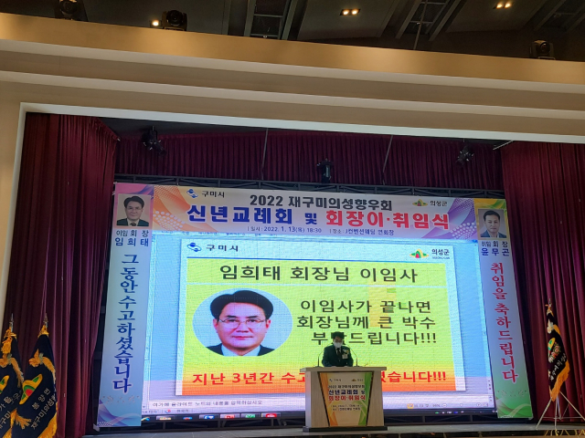재구미의성향우회는 지난 1월13일 저녁 J컨벤션웨딩 연회장에서 2022 신년교례회 및 회장 이·취임식을 실시했다.