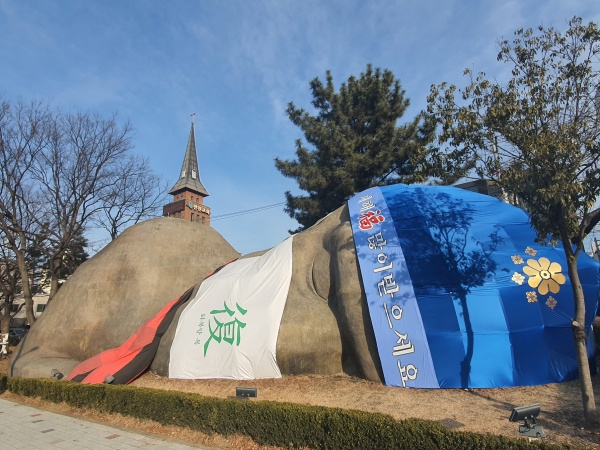 달서구는 무형의 홍보대사로 활약하고 있는 선사시대 랜드마크인 ‘2만년의 역사가 잠든 곳’ 조형물에 도령모자를 씌우는 이색적인 퍼포먼스를 통해 설날 맞이 새해인사 메시지를 전달한다.