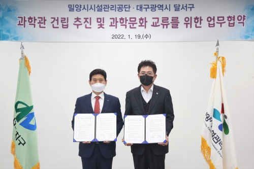 대구 달서구는 19일 밀양아리랑우주천문대(밀양시시설관리공단)와 과학관의 건립 추진을 위해 업무협약(MOU)을 체결했다고 밝혔다.