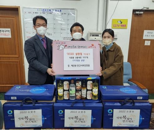 해안동 민간사회안전망(위원장 이민수)은 지난 19일, 다가오는 2022년 임인년 설을 맞이해 식료품 선물세트 100세트(310만 원 상당)를 기탁했다.