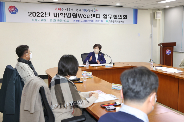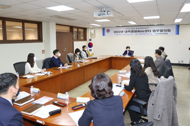 대구시교육청(교육감 강은희)은 1월 25일(화) 오후 3시 시교육청 회의실에서 2022년 학생 정신건강 사업의 원활한 추진을 위한 ‘지역 4개 대학병원 Wee센터장과 간담회’를 가졌다.