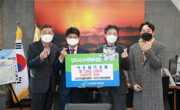 소프트웨어벤처타워 운영위원회(대표회장 정호원)는 1월 26일(수) 북구 관내 저소득 가구에 전달해 달라며 280만 원 상당의 백미(10kg) 100포를 대구 북구청에 기탁했다.