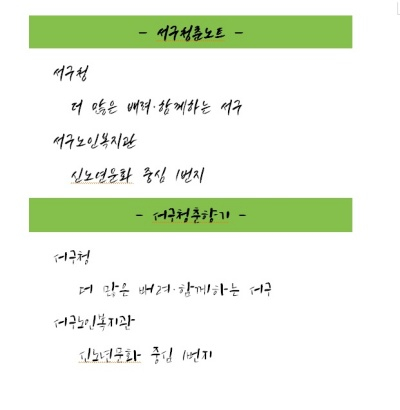 | ↑↑ ‘서구청춘향기’, ‘서구청춘노트’ 두 종류의 폰트 |