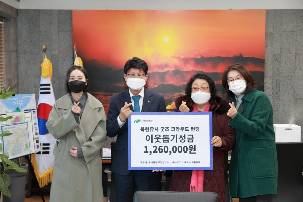 복현1동 주민협의체와 청년 지역 크리에이터는 2월 7일(월) 북구 복현1동에 전달해 달라며 크라우드 펀딩 기부금 126만 원을 대구 북구청에 전달했다.