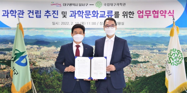 대구 달서구(구청장 이태훈)과 국립대구과학관(관장 백운기)은 10일 공립전문과학관 건립 및 과학문화 교류를 통한 과학문화 확산 협력을 위해 업무협약식을 개최했다.