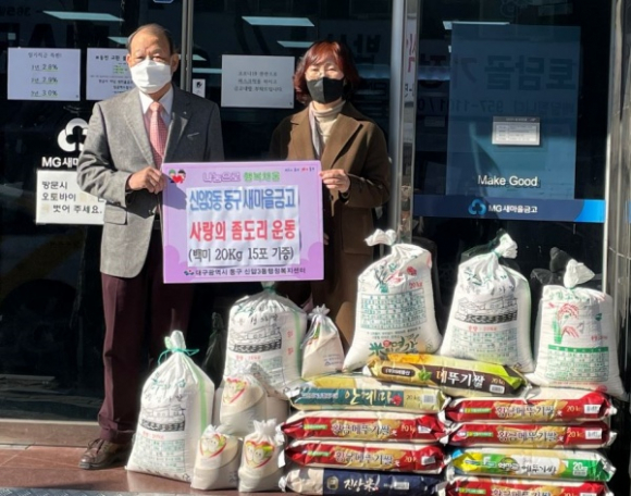 | ↑↑ 「동구새마을금고-사랑의 좀도리 운동」 신암3동에 백미 20kg 15포 기탁(2022. 2. 21.) |