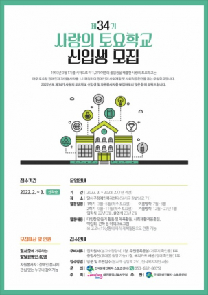 달서구는 제34기 사랑의 토요학교 신입생 40명을 2월 28일까지 모집하고, 입학식은 3월 초 개최할 예정이다. 자세한 내용은 달서구청 어르신장애인과(☎053-667-2564), 전석장애인복지센터(☎053-652-8075), 각 동 행정복지센터로 문의하면 된다.