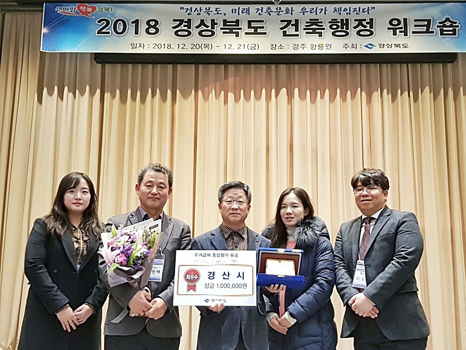 경산시(시장 최영조)는 지난 20일 경주시 황룡원에서 열린 2018년 경상북도 건축행정 종합평가 시상식에서 주거급여부문 최우수 기관 표창을 수상했다.
