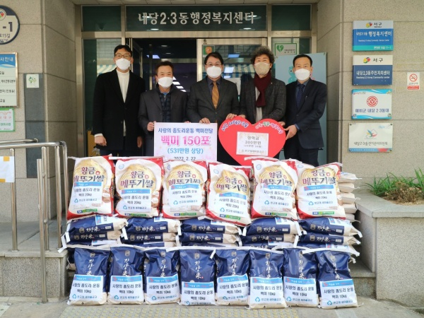 반고개새마을금고(이사장 황무성)는 22일 내당2·3동 행정복지센터를 방문하여 「사랑의 좀도리운동」으로 모은 쌀 150포(531만 원 상당) 및 장학금 300만 원을 전달하였다.