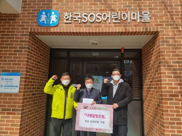 디테일링포럼(대구대표 김태희)은 지난 4일, 대구SOS어린이마을을 방문하여, 동호회 회원들이 모은 성금 100만 원을 전달하였다.