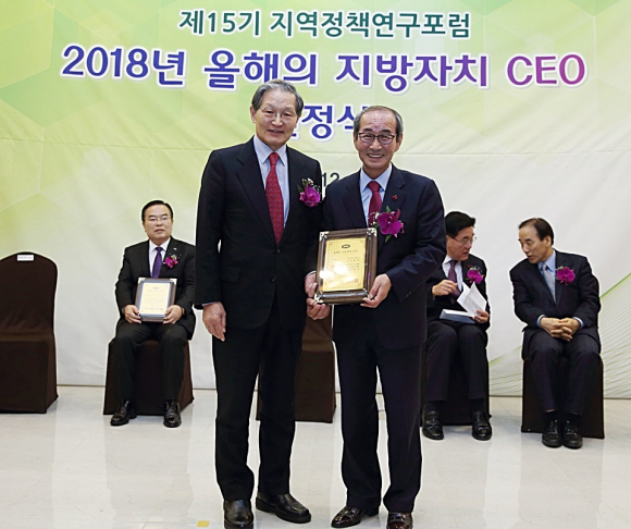 ‘2018년 올해의 지방자치 CEO'상은 전국 243개 지방자치단체에서 후보자를 추천받아 한국지방자치학회 추천 학계 전문가 50명이 투표로 3배수 이내의 최종후보자를 확정한 후, 지난 11월에 개최된 지역정책연구포럼에서 실적홍보를 거친 후 투표권을 부여 받은 제15기 지역정책연구포럼 회원 250명과 전국 지방자치단체 부단체장, 기획부서장, 기획팀장, 인사부서장, 인사팀장 1,380명의 공무원이 참여하여 11월 16일부터 30일까지 투표를 통해 공정하고 엄격하게 선정된 권위있는 상으로 평가되고 있다.