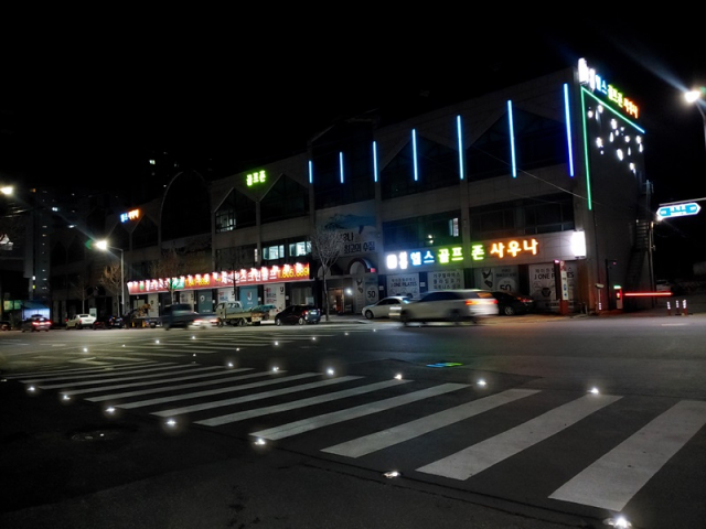 활주로형 횡단보도란 비행기 활주로처럼 횡단보도 양옆을 따라 일정한 간격으로 LED 유도등을 매립한 교통안전 시설물이다. 운행하는 차량이 전방에 횡단보도임을 시각적으로 인지시켜 줄 수 있고, 어두운 거리가 밝아지는 효과도 있다.