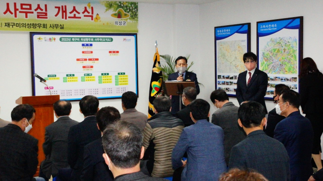 재구미 의성향우회(회장 윤무곤)는 3월31일(목) 장세용 구미시장, 김주수 의성군수, 조동희 재대구경북시도민회 회장 등 100여명이 참석한 가운데 구미시 새마을로32(형곡동)에 위치한 사무실에서 개소식을 가졌다.