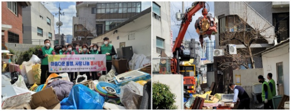 | ↑↑ 남구 봉덕3동 민관협력 저장강박 의심 기초수급가구 대청소 전(좌), 대청소 후(우) |