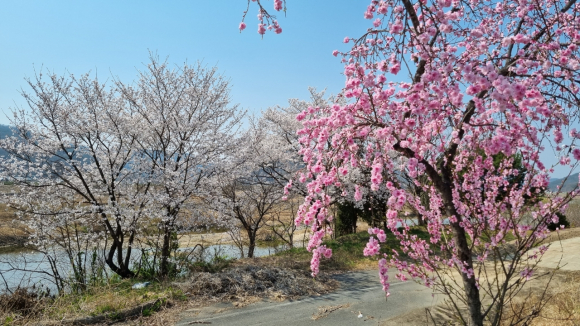 고령군(군수 곽용환) 우곡면 도진리가 복사꽃으로 붉게 물들고 있다. 매년 봄이면 마을을 감싸고 있는 복사꽃과 능수도화가 활짝 피어 봄을 알리고 마을을 화사하게 장식한다.