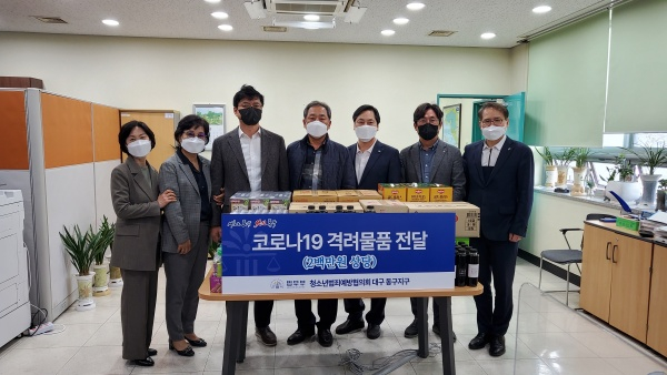청소년범죄예방협의회 대구 동구지구(회장 권기훈)는 지난 5일, 코로나19로 고생하는 보건소 직원들을 위해 200만 원 상당의 후원물품을 전달하고 직원들을 격려했다.