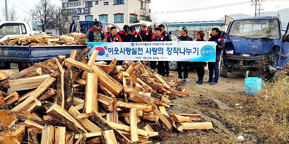 한국자유총연맹 군위군지회 군위읍 청년회 회원들은 지난 23일 직접 준비한 땔감용 장작을 관내 8가구에 트럭으로 배달하여 추운 겨울을 조금이나마 따뜻 하게 지낼수 있도록 사랑과 나눔을 몸소 실천했다.