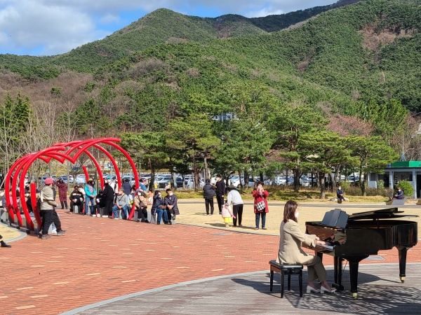 달서구는 지난달 26일 월광수변공원에서 그랜드 피아노 한 대를 설치해 전문 피아노 연주자의 공연 「일상 속 작은 연주회」를 시작으로 이번 달부터 버스킹 공연을 운영한다.
