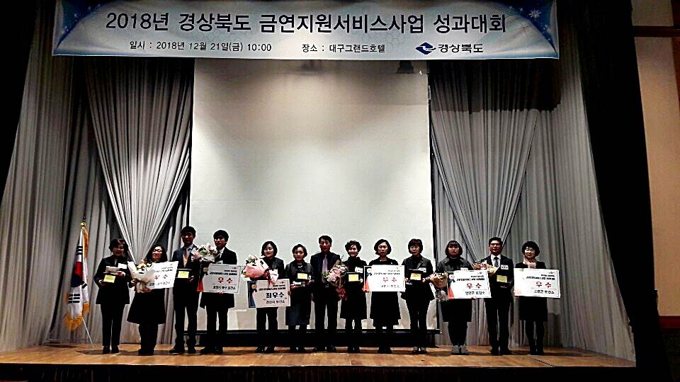 고령군은 지난 21일(금) 10:00 대구그랜드호텔에서 열린 ‘2018년 경상북도 금연지원서비스사업 성과대회’ 행사에서 우수기관상을 수상하였다.