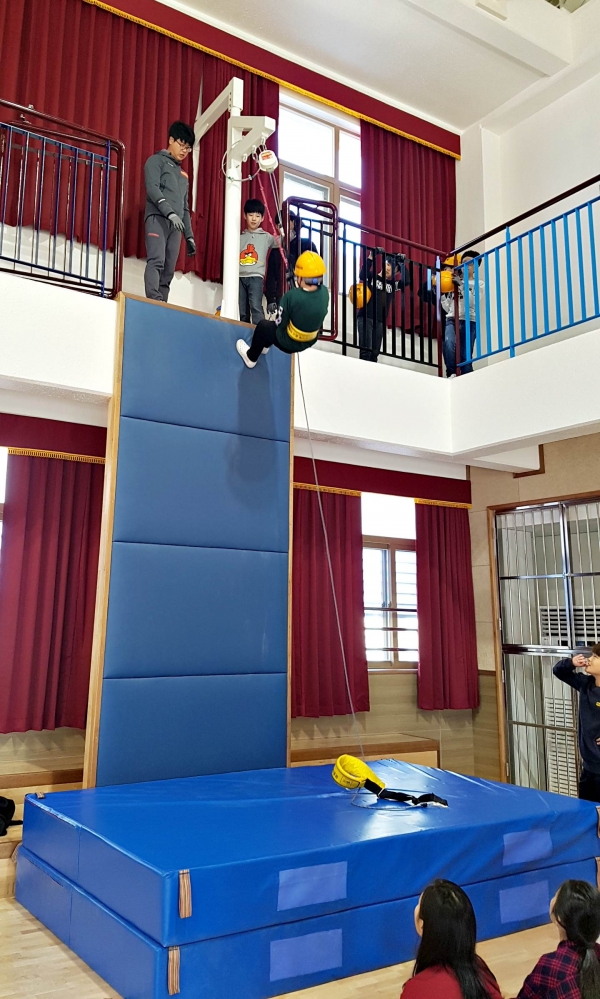 교육시설 유초중등학교에 체험용 피난기구 설치 및 훈련 실시(삼영유)