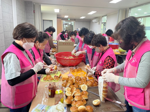 이번 연합자원봉사는 자원봉사대학 동창회원, 이웃사랑나눔 봉사단, 청라센트럴파크 부녀회, 남산하누리마을 활력단 등 총 6개 봉사단체 30여 명이 참여하여 간식 도시락 150여 개를 직접 만들었다.