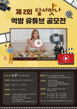 대구 달서구는 5월 16일부터 달서맛나 브랜드의 인지도를 높이고 지역의 숨겨진맛집을 널리 알리기 위해 비대면 채널을 활용한 제2회 달서맛나 먹방 유튜브 공모전을 개최한다.