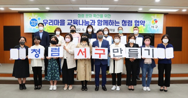 이번 협약은 서구청과 우리마을 교육나눔이 청렴관련 프로그램 연계와 원활한 운영으로 청소년 및 지역 주민의 청렴 마인드 함양과 청렴 문화 확산을 위해 공동으로 노력하고자 마련됐다.