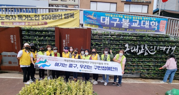대구중구여성친화도시구민참여단(단장 정현이)은 지난 19일 2022 세계가스총회를 앞두고 대구의 얼굴인 반월당네거리 환경개선을 위하여 남산동 반월당역 광복스토리로드 옹벽에 설치한 화분을 정리하고 아이비모종을 심는 벽면녹화사업을 중구청과 협력하여 실시했다.