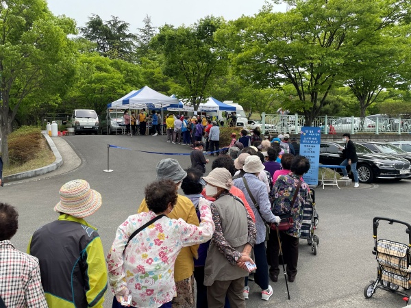대구동구자원봉사센터는 지난 19일 불로고분공원에서 어르신 200명에게 따뜻한 도시락을 전달했다. 코로나로 중단되었던 ‘참! 좋은 사랑의 밥차’는 5월부터 매주 목요일마다 다시 운영되며 오는 26일(목), 신천제일교회에서 진행될 예정이다.