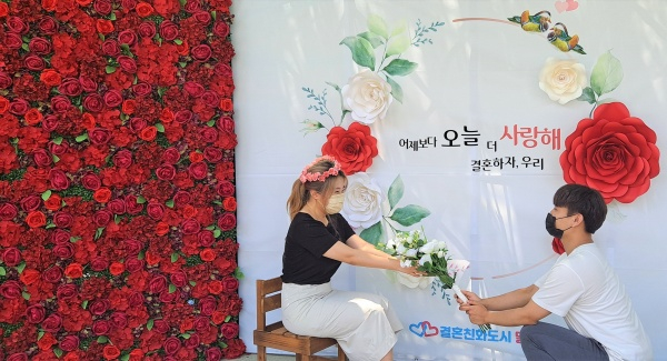 | ↑↑ 달서구, ‘결혼하자, 우리’ 이동식 포토존 커플사진 |